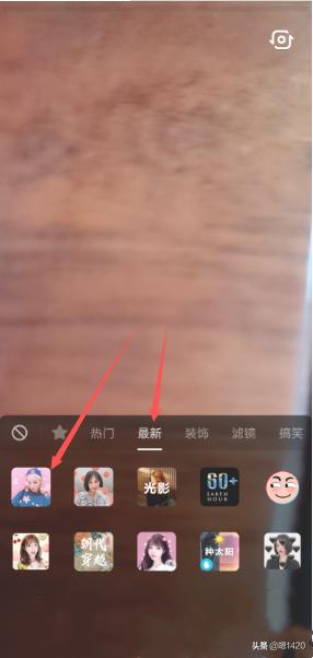 2、然后,在抖音的拍摄界面里,点击左下角的【道具】。