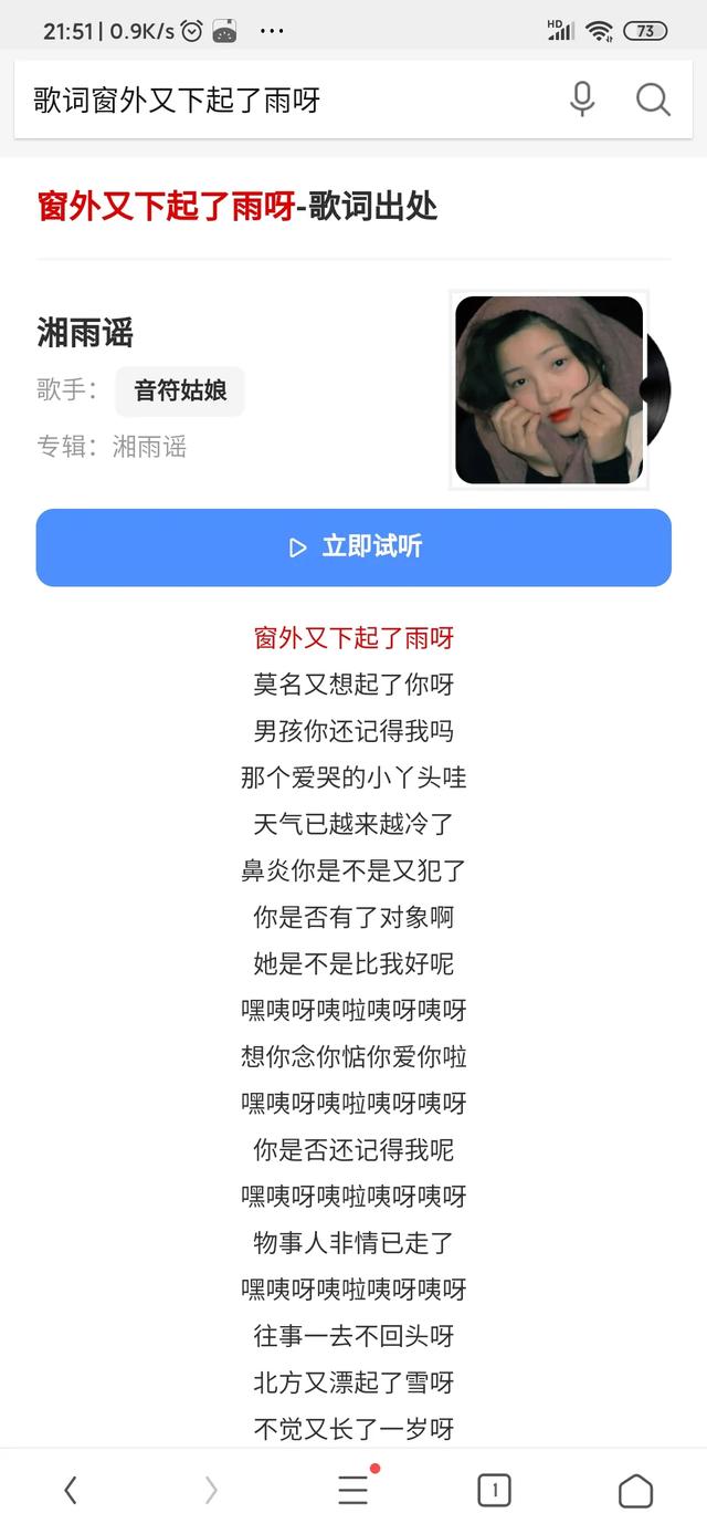 2.歌曲《湘雨谣》,歌词:窗外又下起了雨呀,莫名又想起了你呀