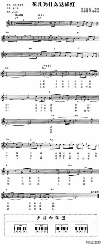 花儿为什么这样红电子琴谱(弹唱谱),花儿为什么这样红简谱"