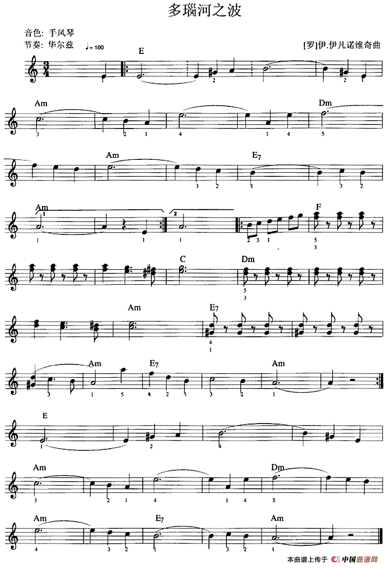 多瑙河之波电子琴谱,多瑙河之波简谱"