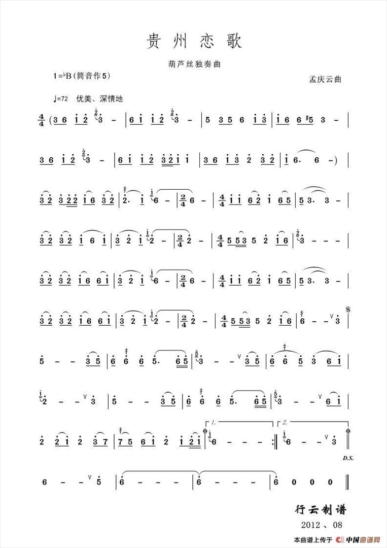 贵州恋歌简谱,贵州恋歌歌曲简介