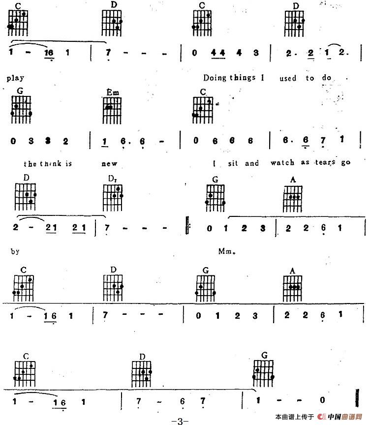 AS TEARS GO BY(电子琴吉他弹唱)电子琴谱,简谱"