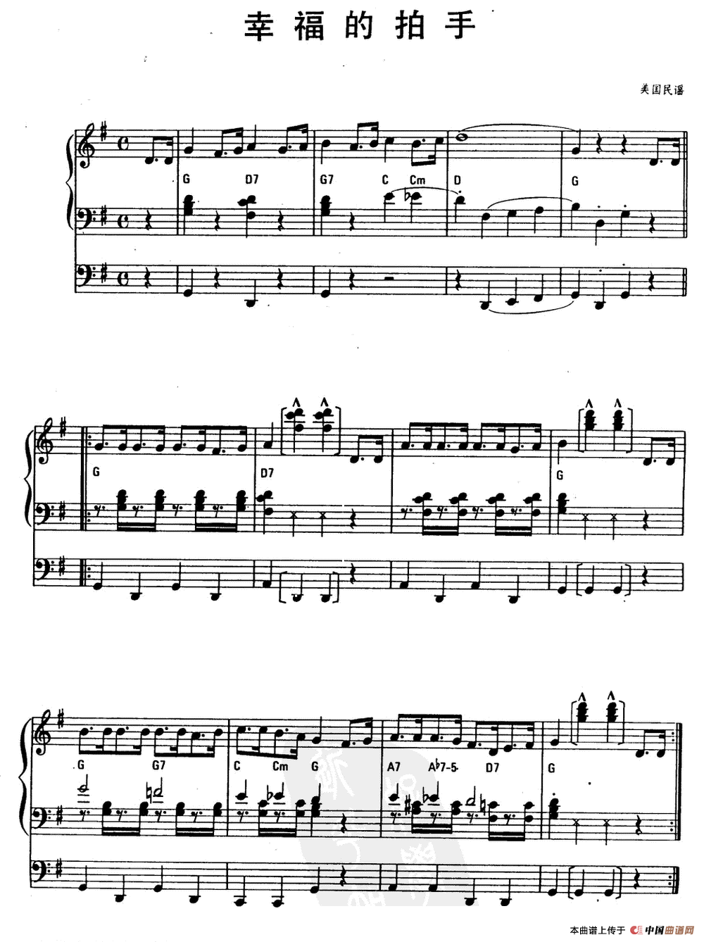 幸福的拍手(美国民谣)(双排键电子琴)电子琴谱,简谱"