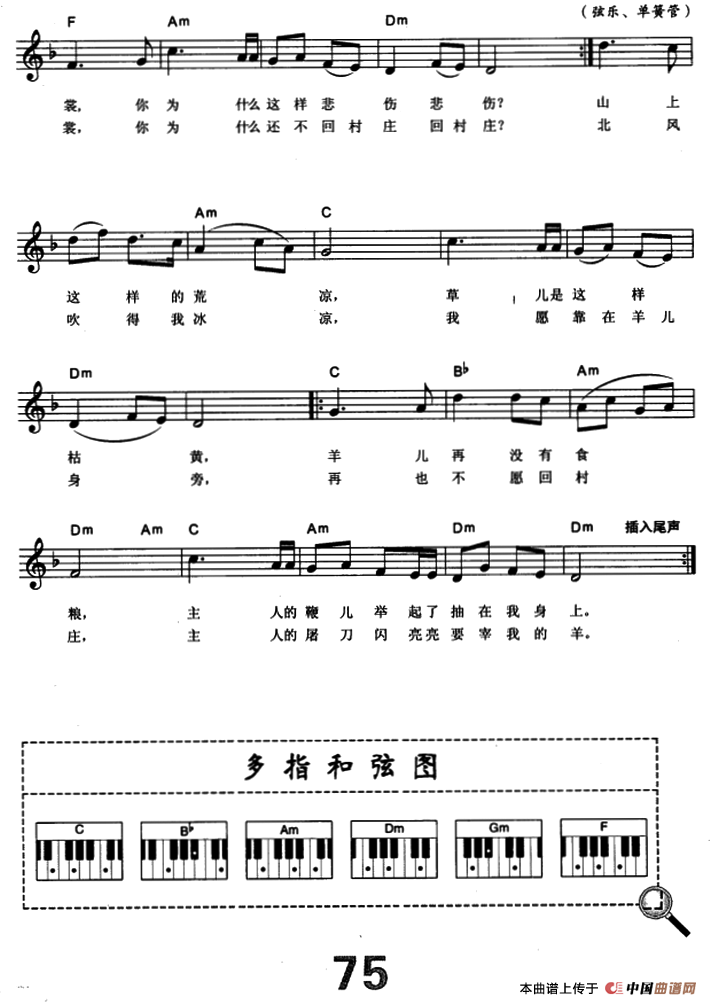 牧羊姑娘(荻帆词 金砂曲)(电子琴弹唱谱)电子琴谱,简谱"