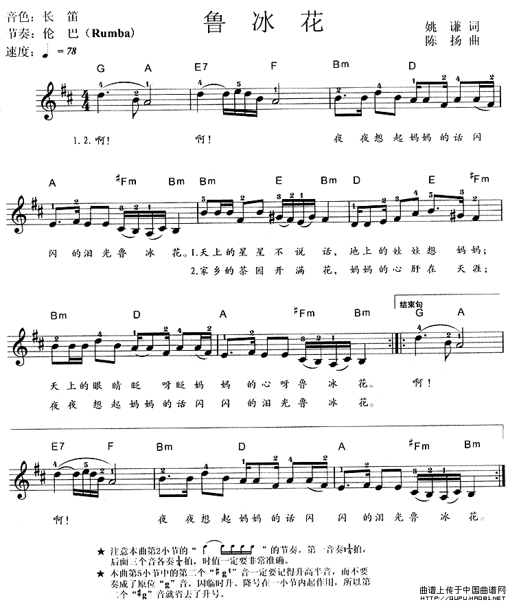 鲁冰花电子琴谱(带歌词、提示版),鲁冰花简谱"