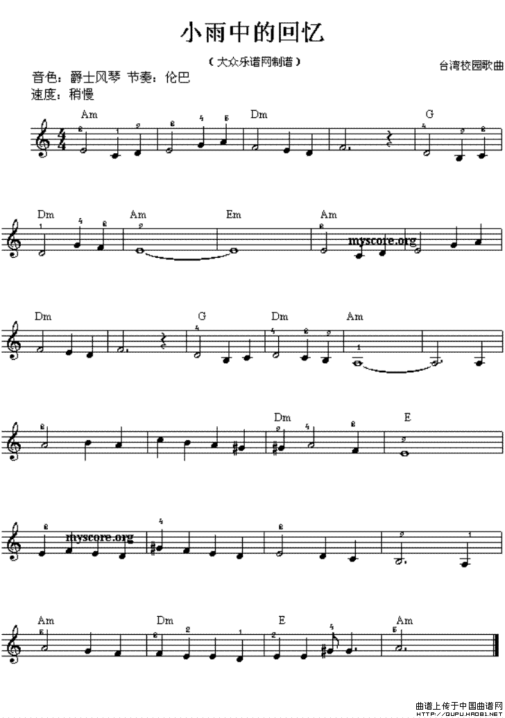 小雨中的回忆电子琴谱,小雨中的回忆简谱"