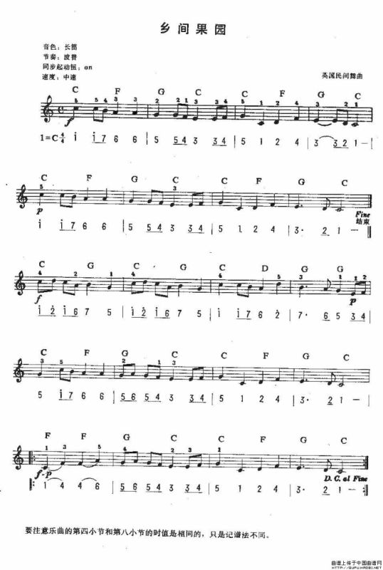 乡间果园电子琴谱(中级班电子琴乐谱),乡间果园简谱"