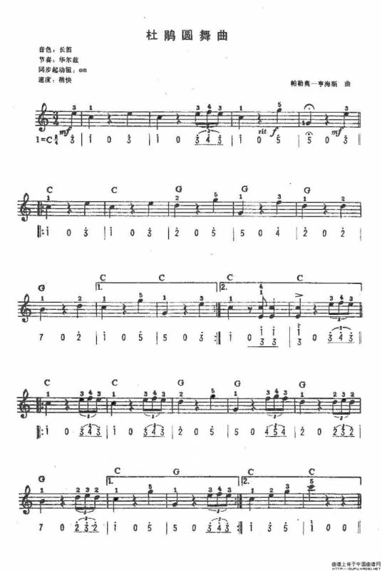 杜鹃圆舞曲电子琴谱(帕勒莫―亨海斯作曲版),杜鹃圆舞曲简谱"