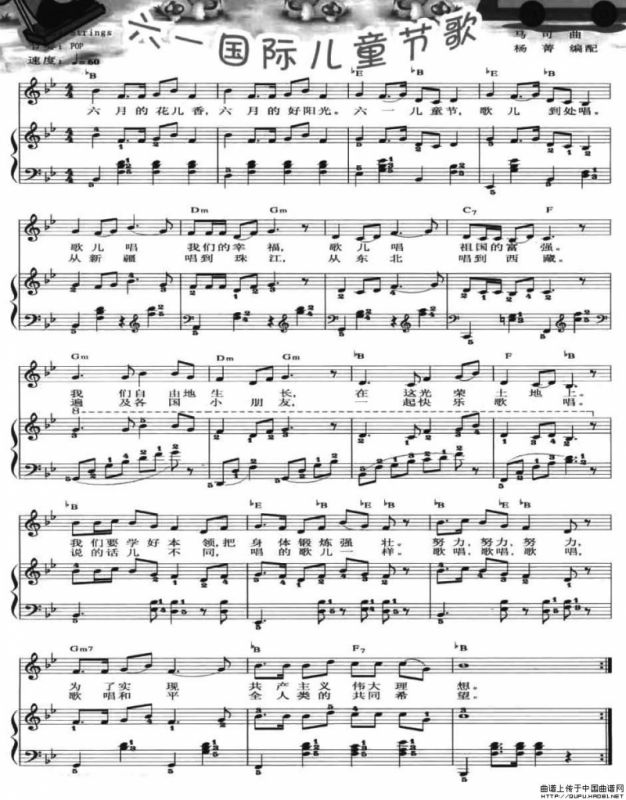 六一国际儿童节歌电子琴谱(弹唱谱),六一国际儿童节歌简谱"