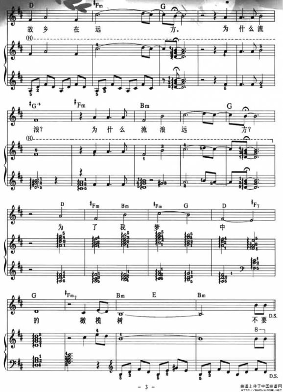 橄榄树电子琴谱(弹唱谱),橄榄树简谱"