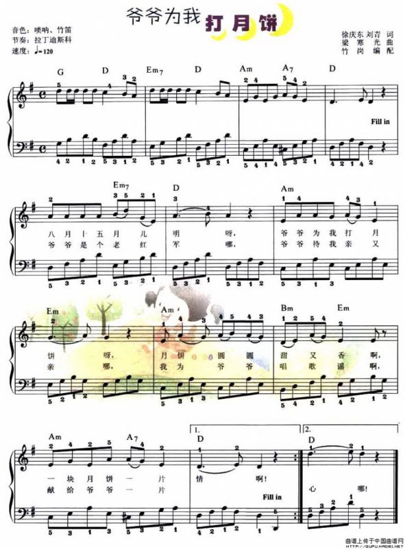 爷爷为我打月饼电子琴谱(弹唱谱),爷爷为我打月饼简谱"