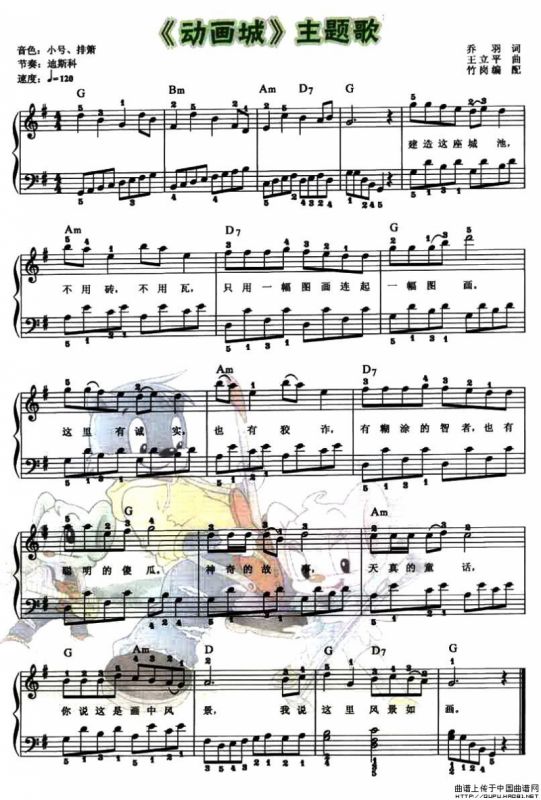 《动画城》主题歌电子琴谱(弹唱谱),《动画城》主题歌简谱"
