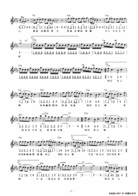 相信自己电子琴谱(线简混排弹唱谱),相信自己简谱"