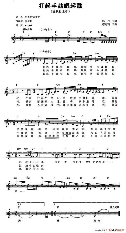 打起手鼓唱起歌电子琴谱(弹唱谱),打起手鼓唱起歌简谱"