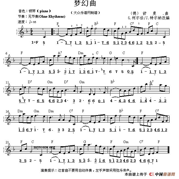 梦幻曲电子琴谱(线简谱混排版),梦幻曲简谱"
