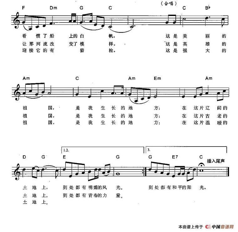 我的祖国电子琴谱(电影《上甘岭》插曲、弹唱谱),我的祖国简谱"