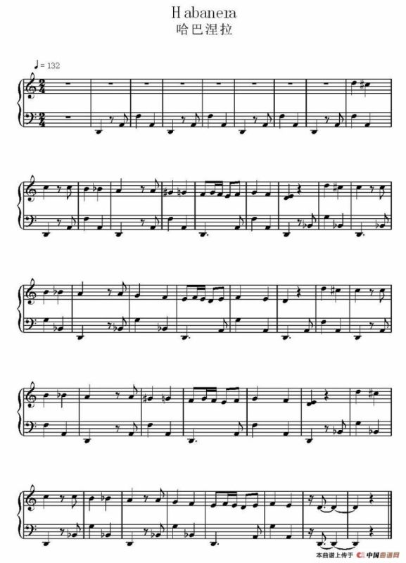 哈巴涅拉电子琴谱,哈巴涅拉简谱"