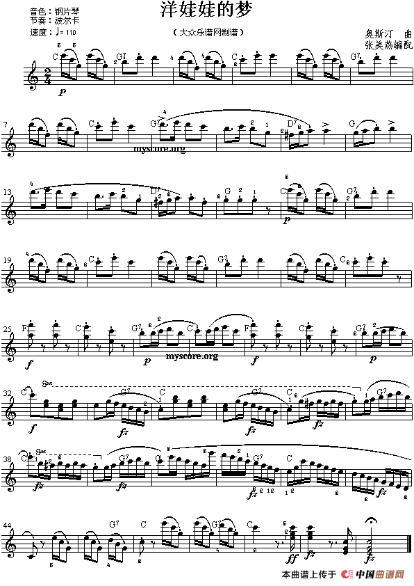 洋娃娃的梦电子琴谱,洋娃娃的梦简谱"
