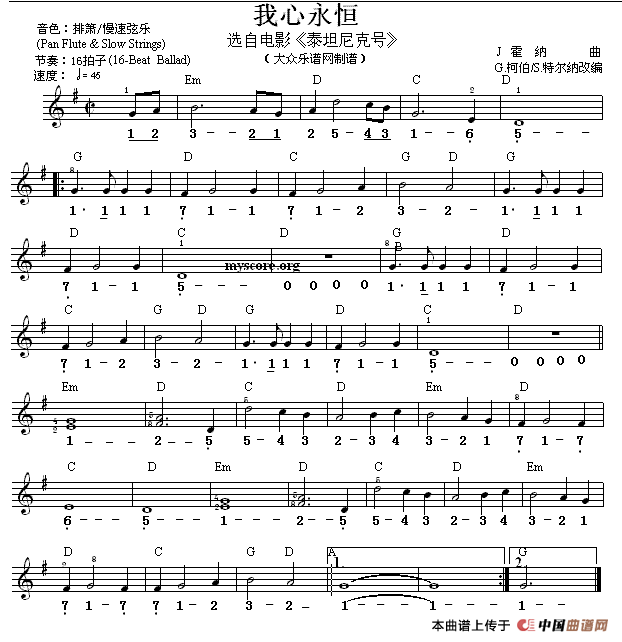 我心永恒电子琴谱,我心永恒简谱"