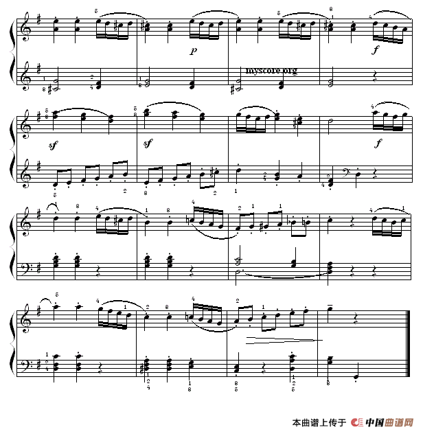 考级初级曲目:小步舞曲(海顿曲)钢琴谱,简谱"