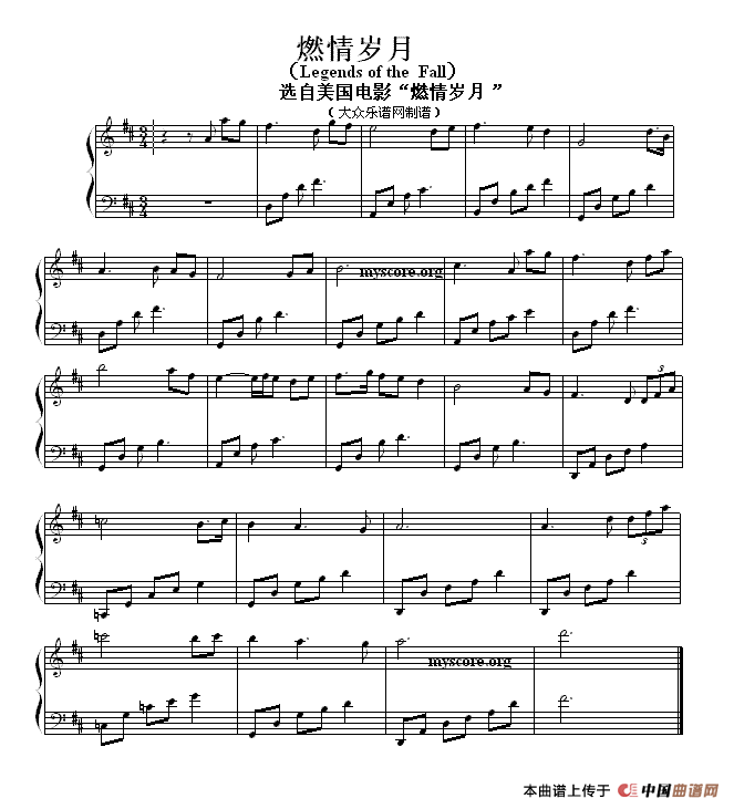 The Ludlows(电影《燃情岁月》主题曲)钢琴谱,简谱"