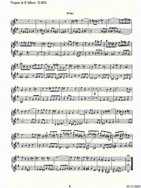 Fugue in E Minor D.952(E小调赋格曲 D.952)钢琴谱,简谱"