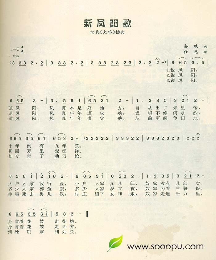 新凤阳歌简谱,新凤阳歌歌曲简介