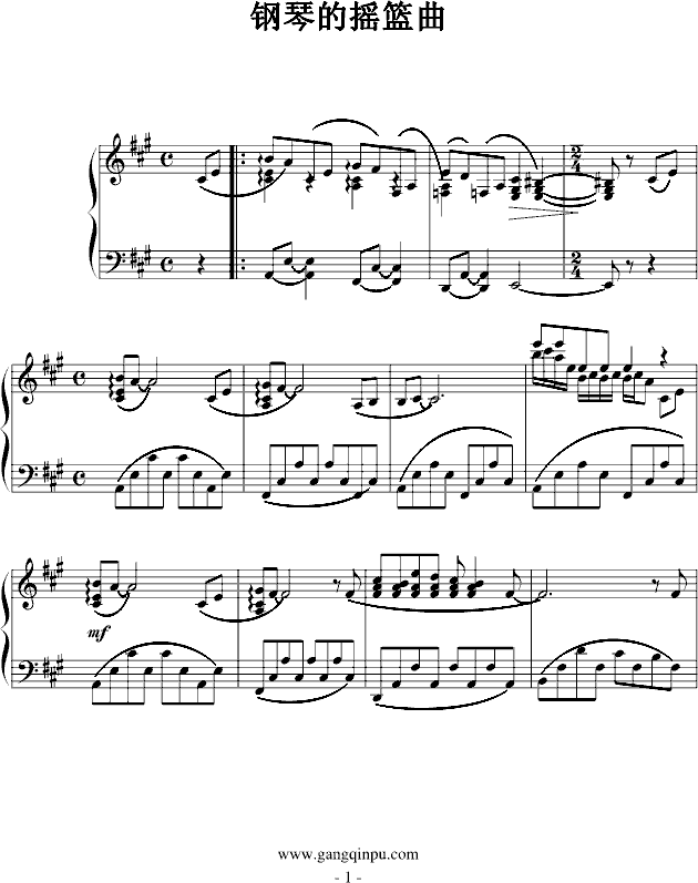 钢琴的摇篮曲简谱,钢琴的摇篮曲歌曲简介