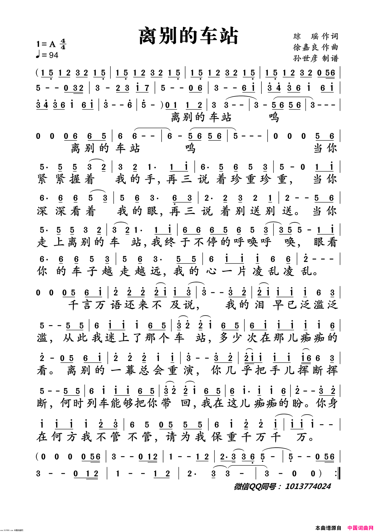 秦淮景《金陵十三钗》主题曲简谱,作词陈其钢,歌词