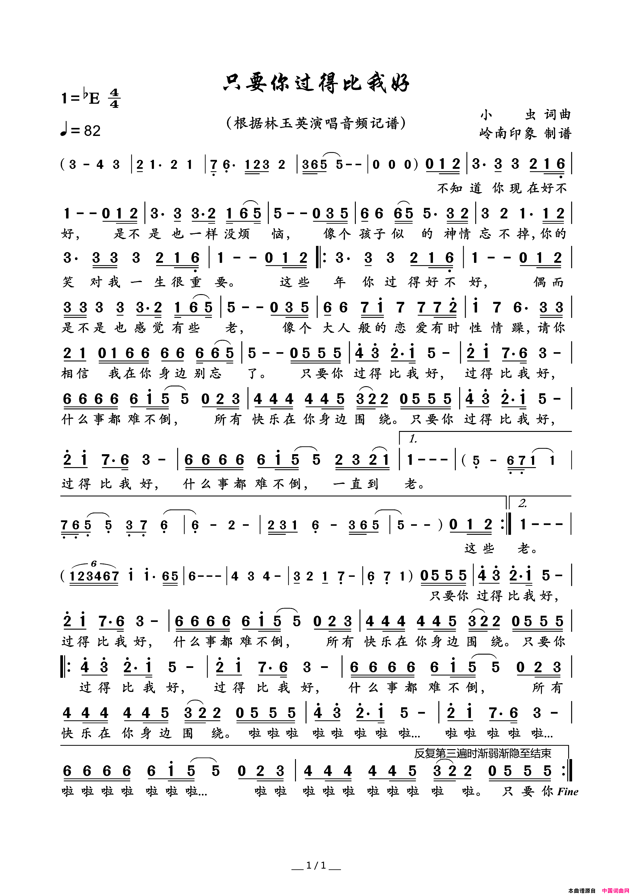 忘川彼岸简谱,演唱零一九零贰,歌词