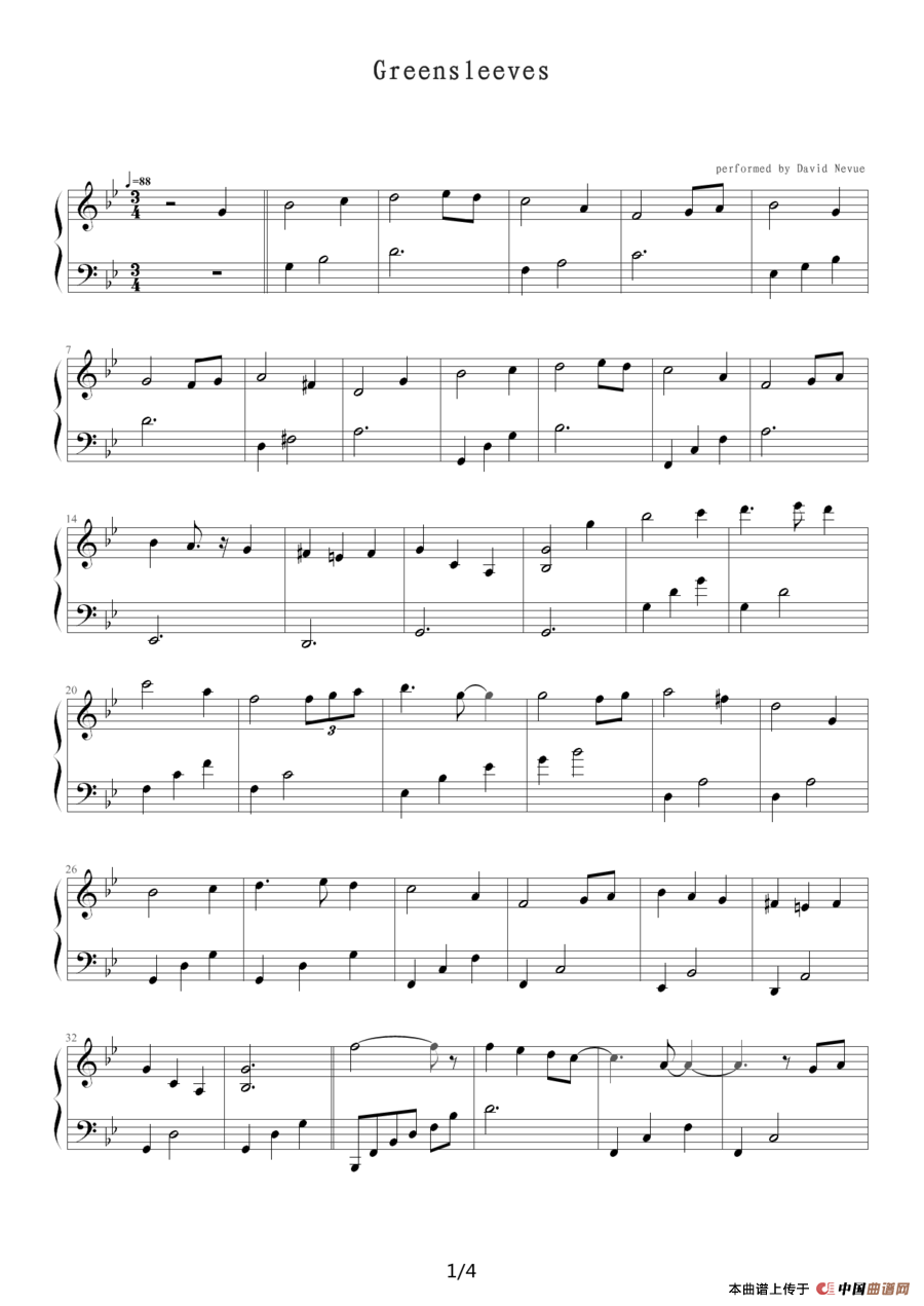 Green sleeves(绿袖子)钢琴谱,简谱