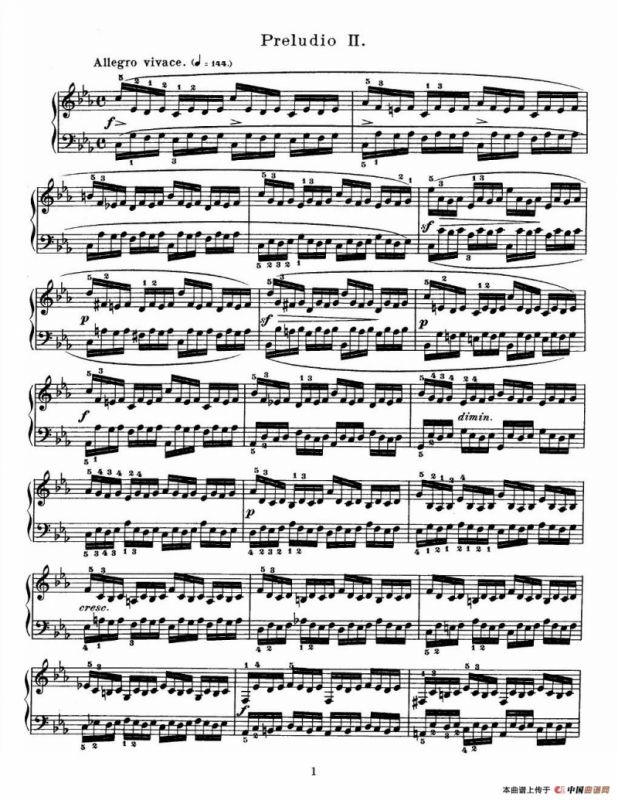巴赫《平均律钢琴曲集》The Well Tempered Clavier(Prelude & Fugue_01)钢琴谱,简谱