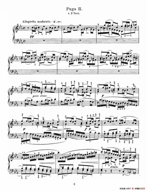 巴赫《平均律钢琴曲集》(Prelude & Fugue-3)钢琴谱,简谱