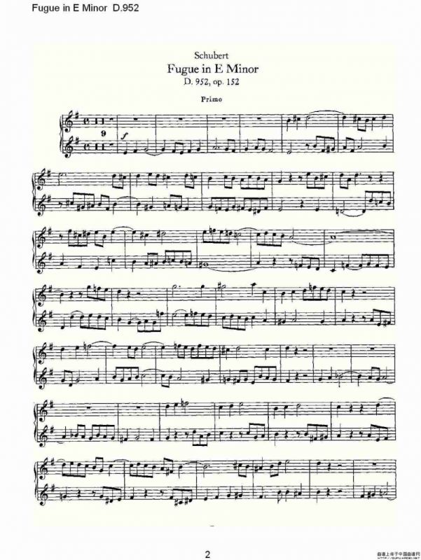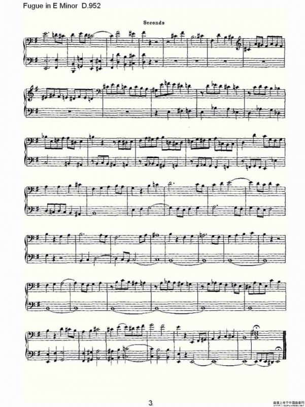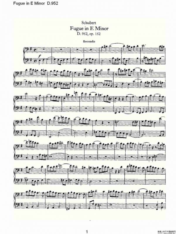 Fugue in E Minor D.952(E小调赋格曲 D.952)钢琴谱,简谱