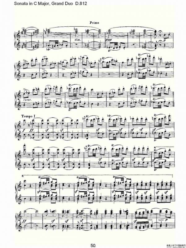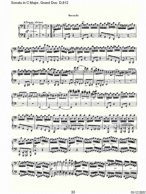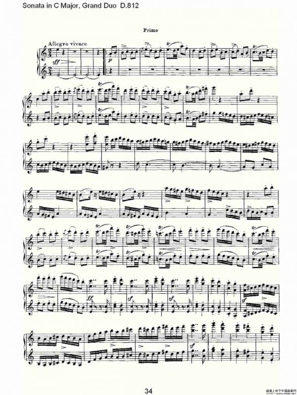 Sonata in C Major, Grand Duo D.812(C大调奏鸣曲,盛大的二重奏 )钢琴谱,简谱