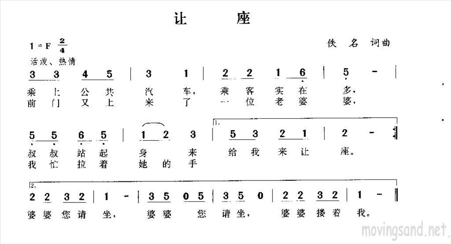 让座简谱,让座歌曲简介