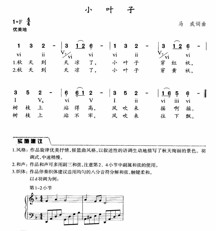 小叶子简谱,小叶子歌曲简介