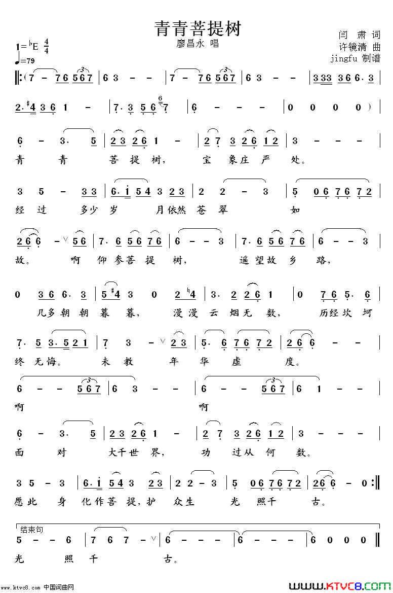 青青菩提树廖昌永版简谱,演唱廖昌永,歌词