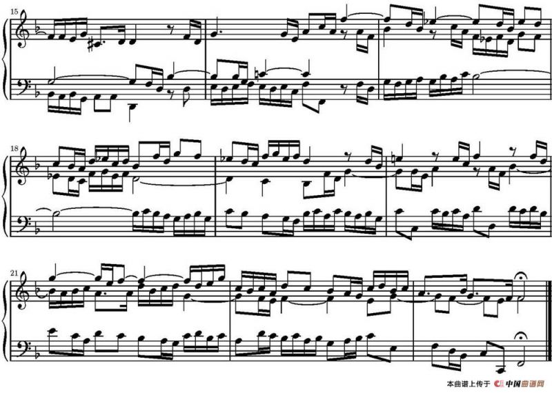 15首巴赫二部创意曲集(NO.15)钢琴谱,简谱"