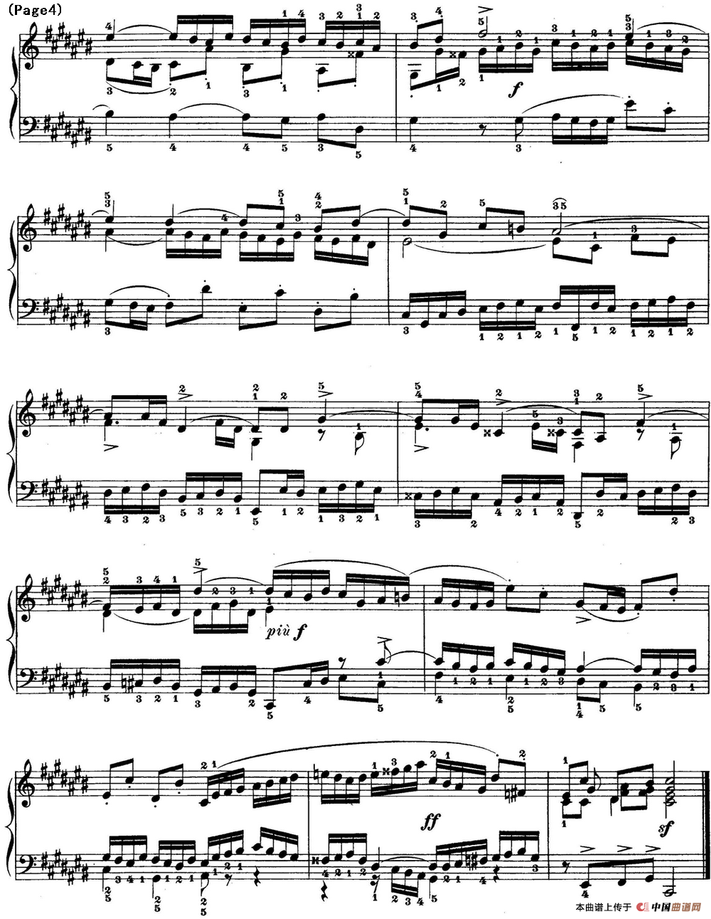巴赫《平均律钢琴曲集·第一卷》之前奏曲(NO.4)钢琴谱,简谱"