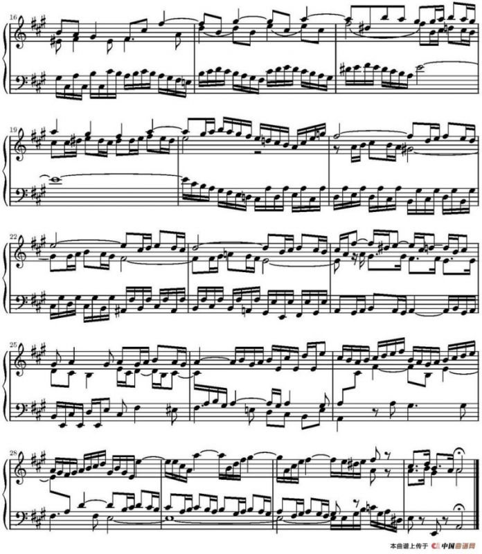 巴赫《平均律钢琴曲集·第一卷》之前奏曲(NO.6)钢琴谱,简谱"