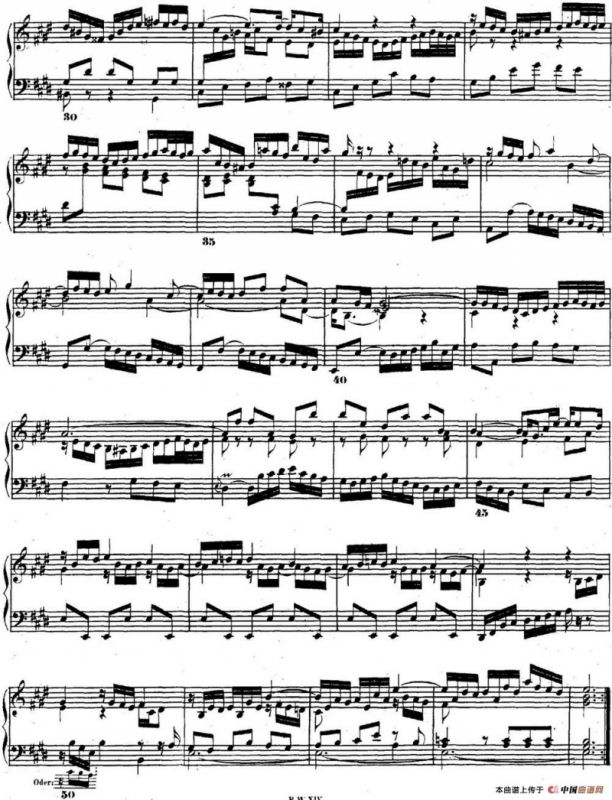 巴赫《平均律钢琴曲集·第二卷》之赋格曲(NO.13)钢琴谱,简谱"