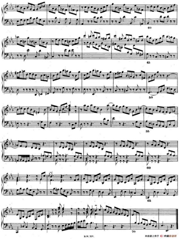 巴赫《平均律钢琴曲集·第二卷》之赋格曲(NO.14)钢琴谱,简谱"