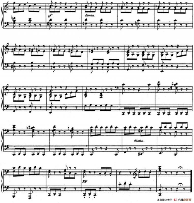 门德尔松无词歌Op.102(NO.3)钢琴谱,简谱"