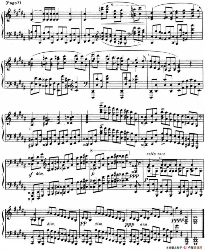 斯克里亚宾 钢琴练习曲 Op.8 No.7 Alexander Scriabin Etudes钢琴谱,简谱"