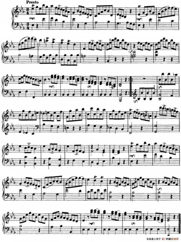 海顿 钢琴奏鸣曲 Hob XVI 28 in E-flat major钢琴谱,简谱"