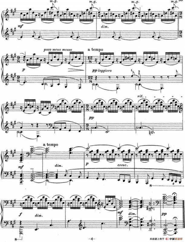 拉赫玛尼诺夫 钢琴前奏曲20 A大调 Op.32 No.9钢琴谱,简谱"
