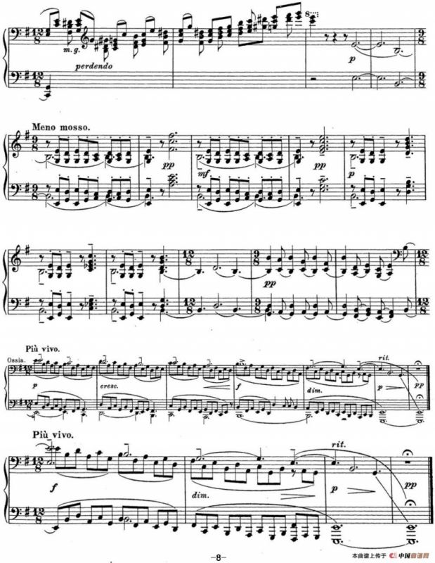 拉赫玛尼诺夫 钢琴前奏曲16 G大调 Op.32 No.5钢琴谱,简谱"