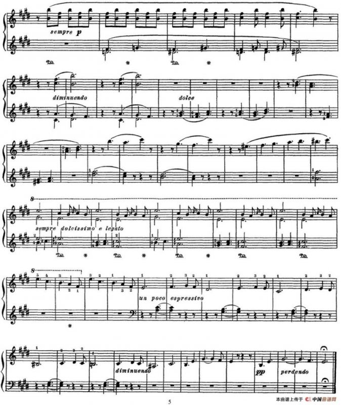 巴拉基列夫 改编钢琴曲《云雀》(格林卡)钢琴谱,简谱"