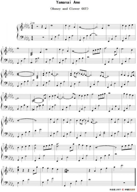 Yamanai Ame(Honey and Clover OST)钢琴谱,简谱"